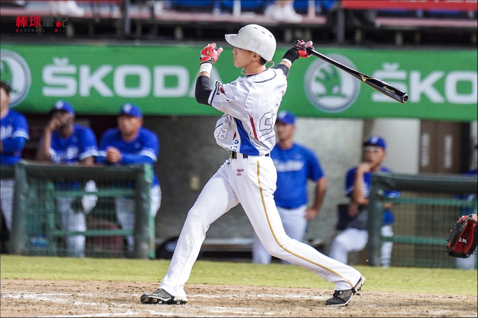 陳晨威敲出再見安打。呂佳龍/攝影
