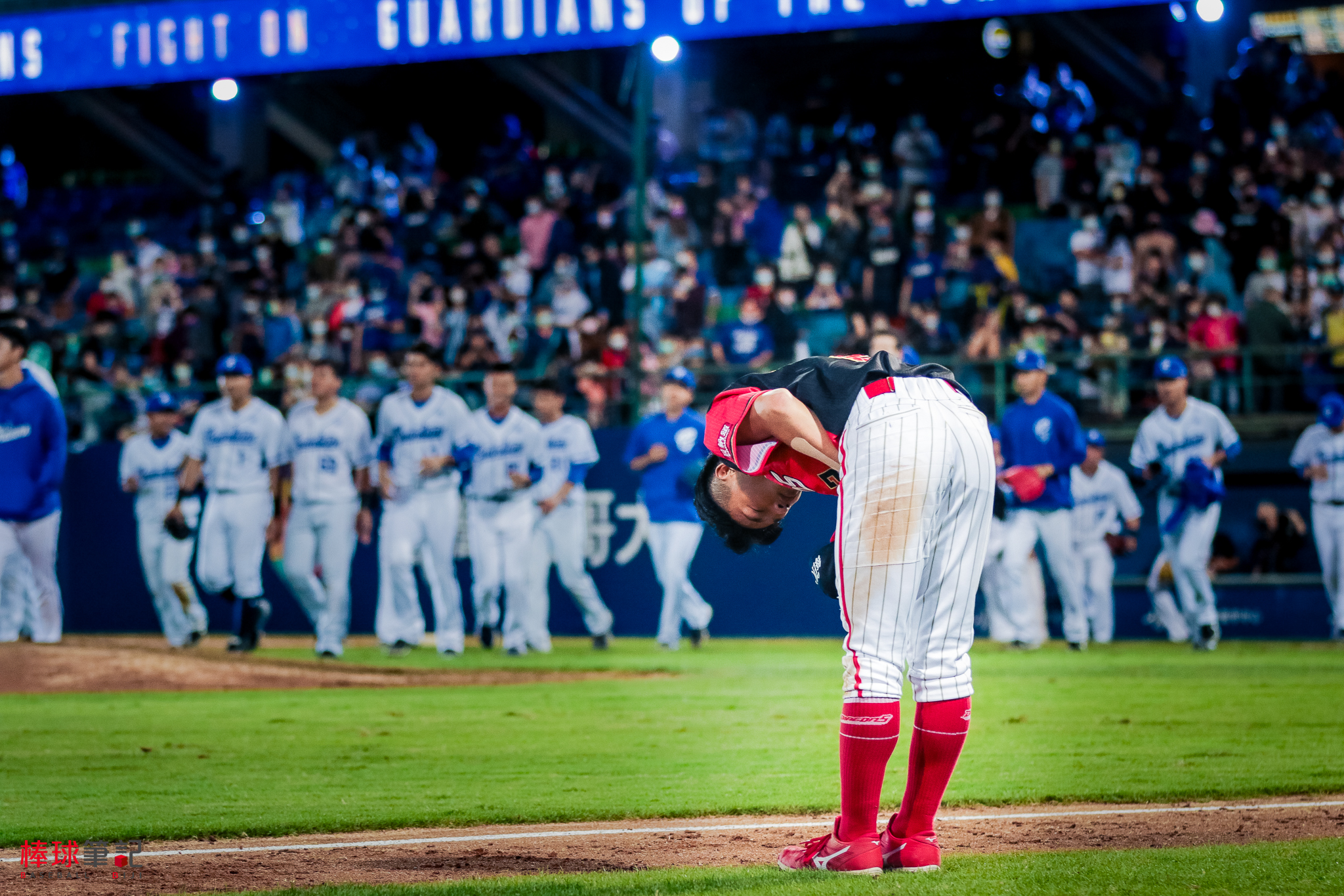 比賽結束當所有人都迅速地返回休息室,郭天信則堅持以90度的鞠躬,向球場獻上最高的敬意,細看會發現他嘴上念念有詞,原來是對球場的感謝。